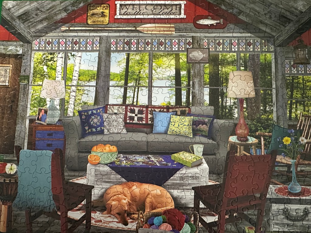 - Work in a different setting. I usually do puzzles on an all4jig puzzle table in my bedroom but sometimes I’ll move out to my living room and work on my dining room table. Once it is a little cooler here, I think it would be fun to try doing a puzzle outside.